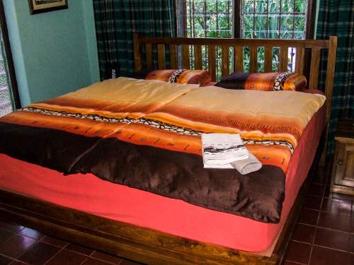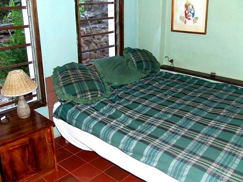 Double Room in the Main Building with King Size Bed and Television. Toilet/Bathroom just opposite.